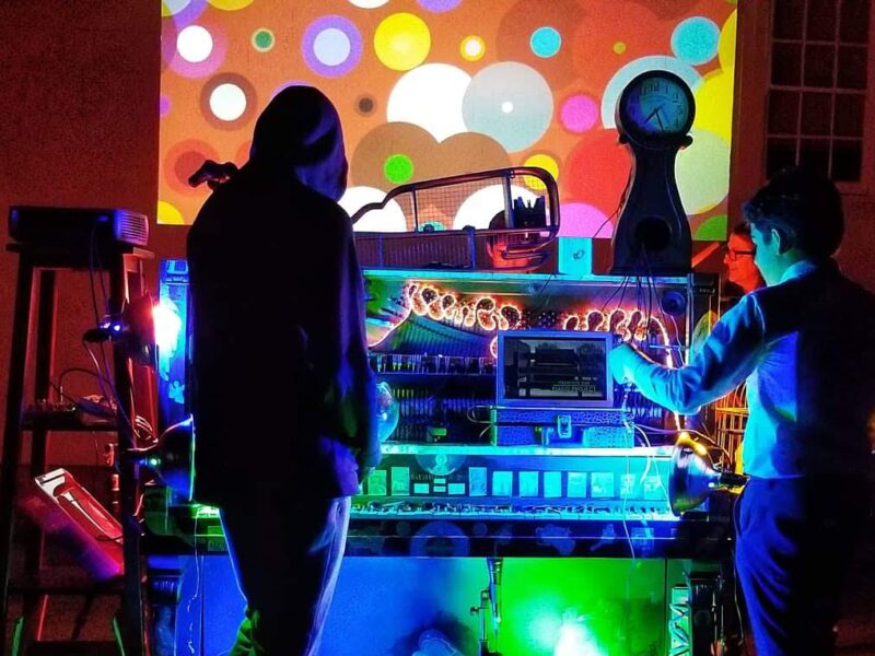 Students composed surrealist musique concrete compositions in GarageBand from the original recordings of the single notes. Because the piano keys were all nailed down, its strings were undamped. We broadcast the compositions into the piano case so the strings resonated sympathetically from the sounds of its own notes, literally playing the piano again. We projected sonically-reactive visuals onto the case during playback and filmed the results.