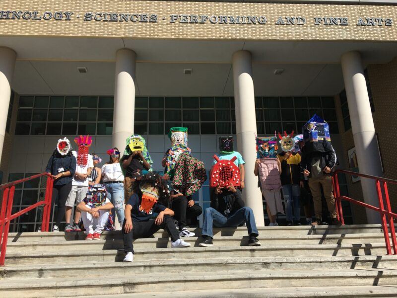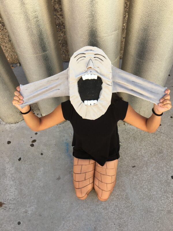 After we’ve spent some time exploring these artists, my students start the work of creating their personas or alter egos. I give them the option to work in groups to make one collective identity or to work solo, inviting them to collaborate with each other on their performance piece. They start with the rough draft and move into making a materials list. We break down the construction into steps: “What must you build first?” “What comes next?” and so on. The performance piece, I find, is more organic and realized through building the persona. Some students know immediately what their movements might be, while others must be in the costume for it to be totally realized. This part is incredibly fun to observe as they explore the power of their new identities and the freedom they can provide. Students record short videos on their phones, and I compile them into a film we all watch together. There is, of course, popcorn. In other years, they have performed around the school grounds and a version of a flash mob. Through painting, sculpture, and multimedia installations, students can experiment with creating their personas, infusing their artwork with deeper meanings and narratives inspired by their personal experiences. This process enhances their artistic skills and fosters empathy and an understanding of diverse perspectives.