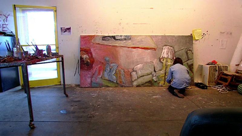 There are few paintings that come fast and sharp. I’m interested in this idea of looking down at a scene to get a different perspective within the painting. I’m sure I got that from Matisse. I can’t say what makes me say, “that’s wrong, that stays, that goes, this should be longer.” Sitting there and looking and going, “I have to do something, and do something, and then do something else,” that’s how a painting gets made.