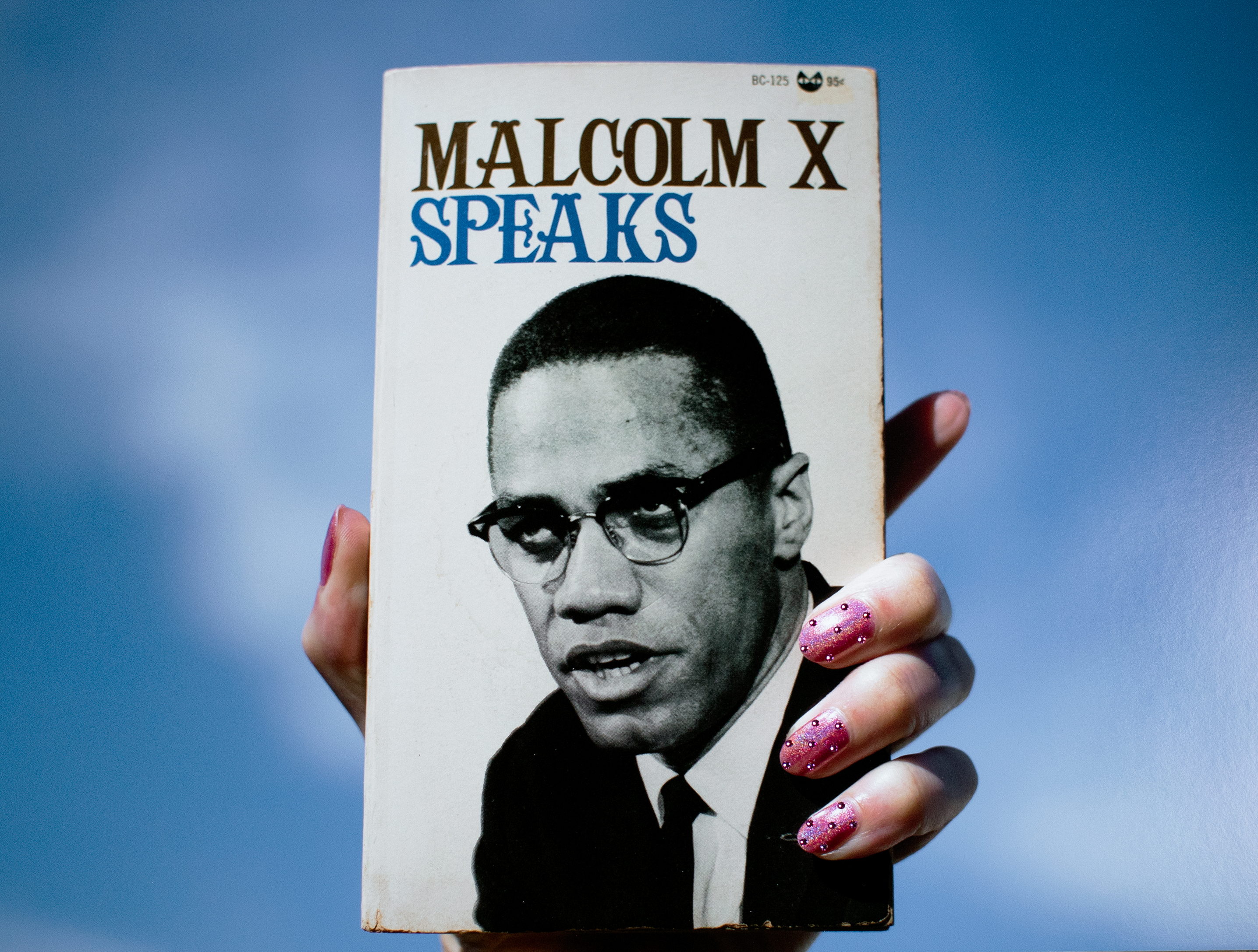 Sadie Barnette, Untitled (Malcolm × Speaks), 2018. Archival pigment print and Swarovski crystals. Courtesy of the artist and Charlie James Gallery, Los Angeles.