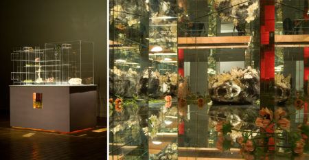 In diorama-like tableaux, Altmejd pairs objects laden with symbolism—crystals, gold chain, bondage gear, and taxidermy birds and animals—with virtuosic applications of materials such as plaster, glitter, thread, minerals, mirrors, and Plexiglas. In dazzling displays of active sculpting—holes and passages pushed through forms to drive matter “somewhere else”—Altmejd’s work expresses the intense flow of energy traveling through space and teeters between investigations of sexuality, decay, spirituality, death, and—always—life.