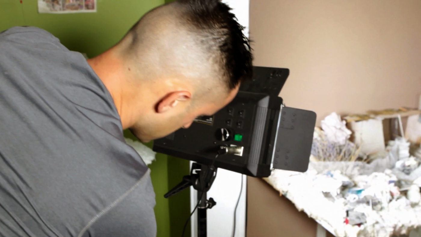 Continuing to build fantastical worlds in his adult work, Hartung combines stop-motion animation and self-produced videos with found footage and cheap consumer technologies; all of his production sets are built in his studio using found objects. Employing sculpture and video, Hartung’s work addresses wide-ranging topics—such as the Bible and the history of colonialism—with a surrealist DIY aesthetic, tackling critical issues through streams of consciousness storytelling.