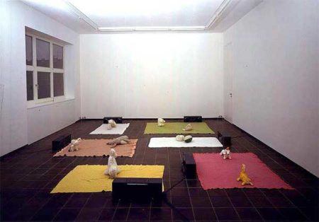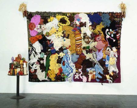 He also comments on and undermines the legitimacy of the concept of victim or trauma culture, which posits that almost all behavior results from some form of repressed abuse. Kelley’s ongoing pseudo-autobiographical project, Extracurricular Activity Projective Reconstruction, begun in 1995, is a planned compendium of 365 sculpture and video works, inspired by mundane yearbook photos and an examination of his own selective amnesia. Kelley’s aesthetic mines the rich and often overlooked history of vernacular art in America, and his practice borrows heavily from the confrontational, politically conscious, “by all means necessary” attitude of punk music.