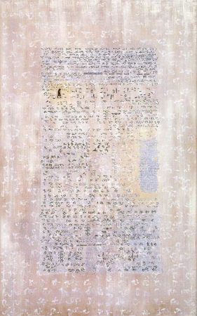 Beryl Korot was born in 1945 in New York City, where she lives and works. She graduated from Queens College in 1967 with a BA in English literature. In her practice, Korot explores how information is encoded and transmitted through systems of lines, grids, and patterns throughout human history. Drawing upon traditions and strategies found in weaving, print media, and video recording, the artist develops artworks that uniquely visualize the intersections of history, language, and technology.