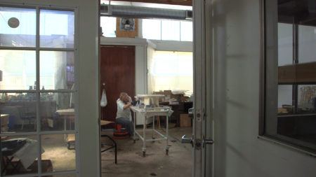 Optically they allure and confuse, such as her sculptures of wiry boxes that appear to solidify into new shapes based on the alignment of colors. Working with both analog and digital tools, Larner’s materials change from work to work and can include fiberglass, crystals, paper, clay, aluminum, steel, rubber, epoxy, mirror, cloth, and even bacteria. As daring as her investigation into new forms can be, Larner’s sculptures are approachable in their human scale and idiosyncratic vision that favors personal narrative over minimal austerity.