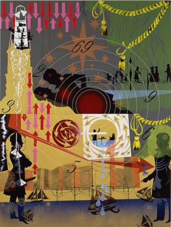 Lari Pittman was born in Los Angeles, California, in 1952. Pittman received both a BFA (1974) and an MFA (1976) from California Institute of the Arts, Valencia. Inspired by commercial advertising, folk art, and decorative traditions, his meticulously layered paintings transform pattern and signage into luxurious scenes fraught with complexity, difference, and desire. In a manner both visually gripping and psychologically strange, Pittman’s hallucinatory works reference myriad aesthetic styles, from Victorian silhouettes to social realist murals to Mexican “retablos.”