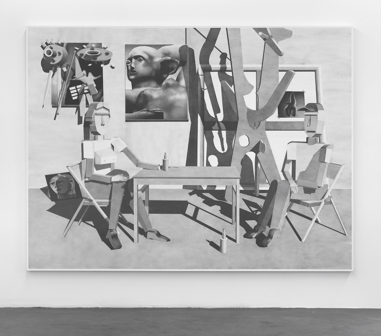 Avery Singer was born in 1987 in New York, where she continues to live and work. Painting almost exclusively in tones of black and white, Singer’s canvases teeter between abstraction and figuration.
