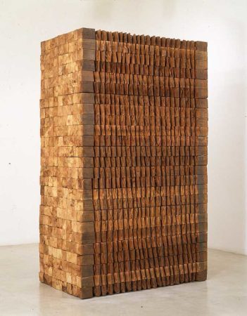 Ursula von Rydingsvard was born in Deensen, Germany, in 1942. She received a BA and an MA from the University of Miami, Coral Gables (1965), an MFA from Columbia University (1975), and an honorary doctorate from the Maryland Institute College of Art, Baltimore (1991). Von Rydingsvard’s massive sculptures reveal the trace of the human hand and resemble wooden bowls, tools, and walls that seem to echo the artist’s family heritage in pre-industrial Poland before World War II.