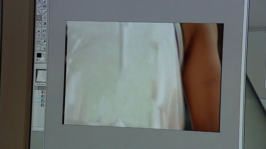 PFEIFFER: I started out in this process thinking, “I’ve spent the last couple of years trying to accumulate footage from commercially available tapes and off the TV, and wouldn’t it be great to take it one step further, or one step closer to the source and try to get exactly the images I want, on the spot?” Especially because I’m working with special effects software to do a lot of the manipulations that I am doing. And what I have or what I can generally afford is a consumer-level version of much more expensive machines and software that only Hollywood can use. So, I’m really interested in trying to figure out how to move past the consumer level. Not necessarily to do something more Hollywood, but to my mind, kind of, it’s a way of getting deeper into the material.