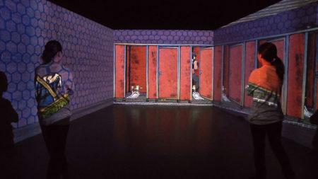 The Japanese artist did not begin working on the artwork with a preconceived idea but rather started by adding disparate elements to the animation that then formed meaning through their interactions. Tabaimo asks that viewers do not seek to understand her intentions behind dolefullhouse but instead create their own interpretations.