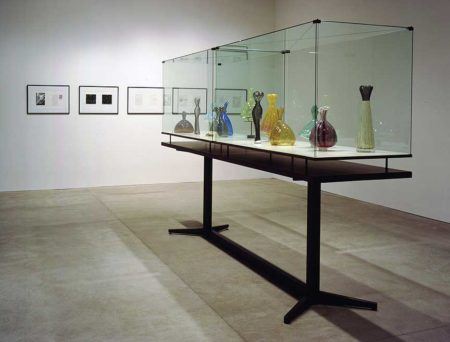 Josiah McElheny creates finely crafted, handmade glass objects that he combines with photographs, text, and museological displays to evoke notions of meaning and memory. Whether recreating miraculous glass objects pictured in Renaissance paintings or modernized versions of non-extant glassware from documentary photographs, McElheny’s work takes as its subject the object, idea, and social nexus of glass. Influenced by the writings of Jorge Luis Borges, McElheny’s work often takes the form of “historical fiction”—which he offers to the viewer to believe or not. Part of McElheny’s fascination with storytelling is that glassmaking is part of an oral tradition, handed down generation to generation, artisan to artisan.