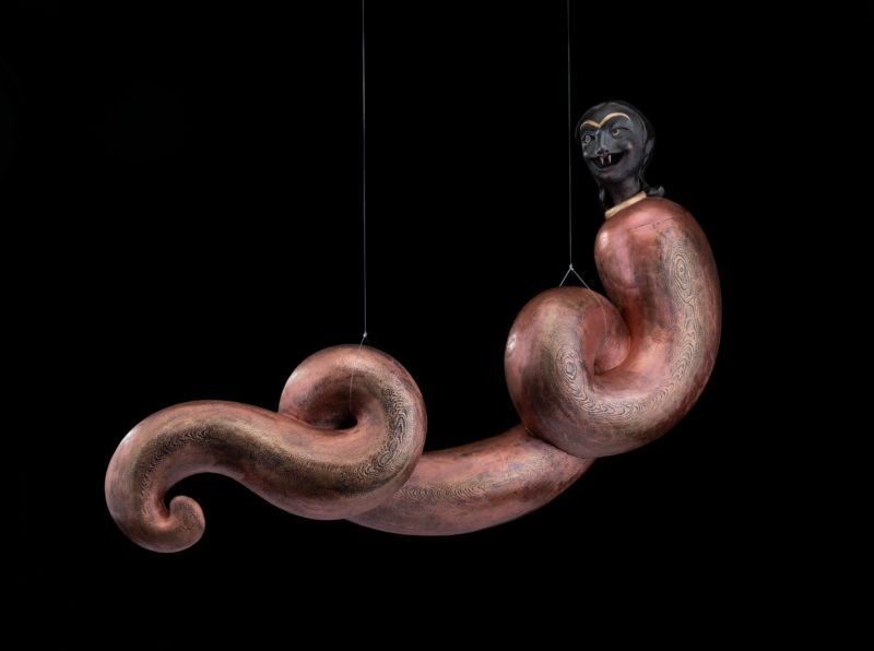In the original story, The Laughing Snake goes to cities and towns killing people, until someone comes and holds a mirror in front of her. When she sees her reflection, she laughs for days and nights until she dies from laughter. But in my re-figuring of the story, I don’t see this act of death as a position of weakness, but rather as a position of power, in which she takes agency over her body, her image, her reflection in the mirror. And so the new story I tell about her connects to the idea of embracing your body as a woman. It connects to my experiences growing up in Iran, and the collective experience of women thinking about sexual desire, street harassment, and different forms of patriarchy that control the way women deal with their bodies in both religious and societal contexts. I embrace the monstrosity of these figures. Instead of seeing monstrosity as negative, I see it as a place where I can turn around power structures.