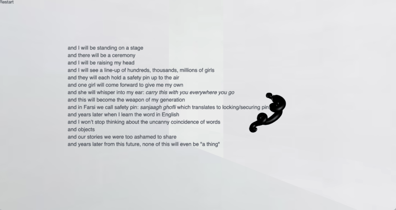 I made this in 2018, and now in 2022 we have the Jin.Jiyan.Azadi/Woman, Life, Freedom Revolution in Iran. Somehow I think this story, this future, is coming into real life practice, and that’s so powerful and important to witness. It’s one of the only revolutions that women have been on the frontline of: women and their bodily agency. We know that patriarchal violence and government violence is still very real and very harmful. Right now, as we do this interview, there is daily news of arrest, torture, and execution of protesters and activists in Iran. All these tactics are about gaining control over your body, mind, and life.