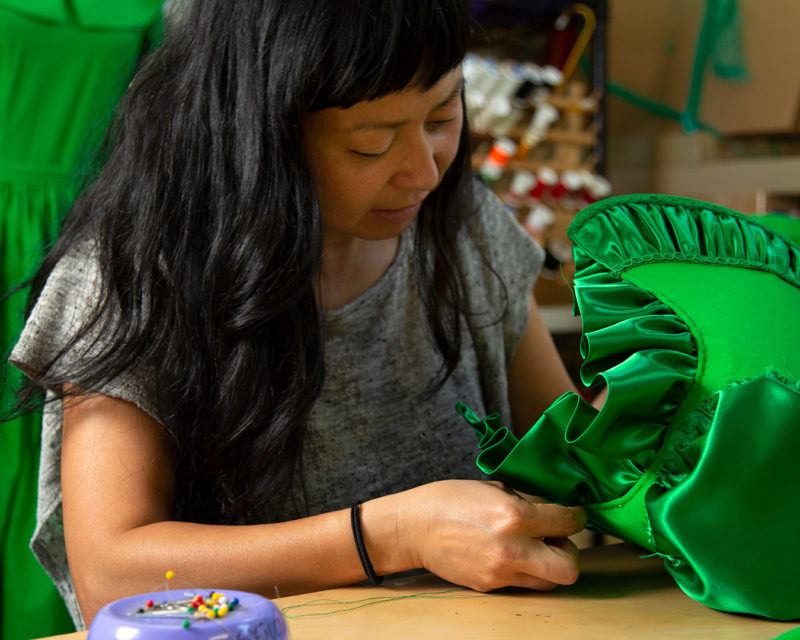 Also, there was a huge rise in xenophobic attacks against Asians and Asian Americans in the U.S. who were wearing masks, and I find it really ironic now that more people are able to or are encouraged to wear them. It doesn’t mark Asian Americans or Asian people in the U.S. as diseased, foreign others and it’s shameful that that was an effect. It’s very complicated. I’ve had a lot of time to think about it too, because obviously I just make [masks] now full-time. There is this grand irony in me spending all this time as an Asian American person seeing the rise in hate crimes and attacks against Asians and making these masks for free.