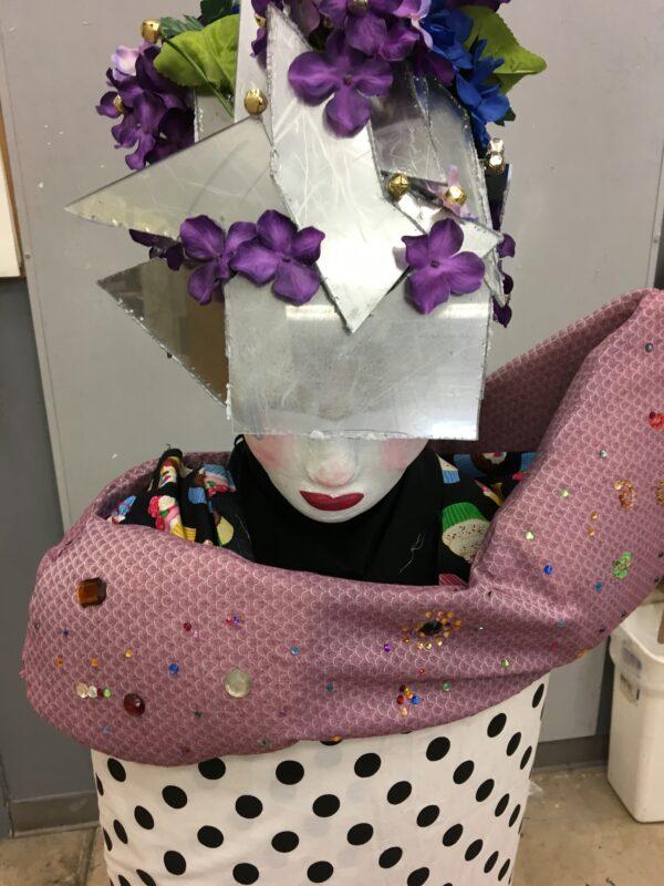 After we’ve spent some time exploring these artists, my students start the work of creating their personas or alter egos. I give them the option to work in groups to make one collective identity or to work solo, inviting them to collaborate with each other on their performance piece. They start with the rough draft and move into making a materials list. We break down the construction into steps: “What must you build first?” “What comes next?” and so on. The performance piece, I find, is more organic and realized through building the persona. Some students know immediately what their movements might be, while others must be in the costume for it to be totally realized. This part is incredibly fun to observe as they explore the power of their new identities and the freedom they can provide. Students record short videos on their phones, and I compile them into a film we all watch together. There is, of course, popcorn. In other years, they have performed around the school grounds and a version of a flash mob. Through painting, sculpture, and multimedia installations, students can experiment with creating their personas, infusing their artwork with deeper meanings and narratives inspired by their personal experiences. This process enhances their artistic skills and fosters empathy and an understanding of diverse perspectives.