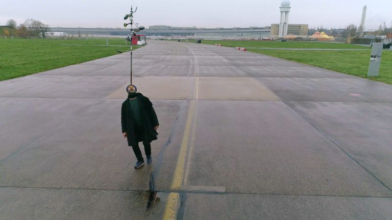Hiwa K performs “Pre-Image (Blind as the Mother Tongue)” at Tempelhof, Berlin. Production still from the Art in the Twenty-First Century episode, “Berlin.” © Art21, Inc. 2018