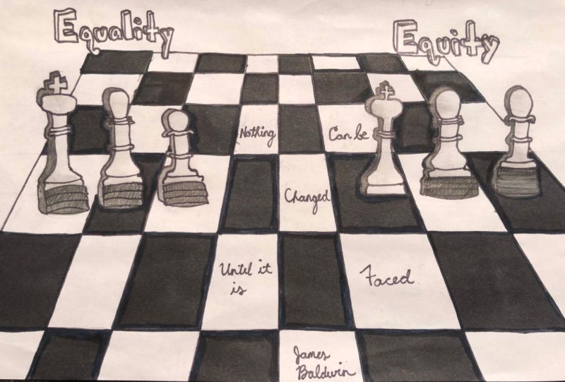 Lesson Three: Prior to the pandemic, our school district was very involved with addressing issues of diversity, equity, and inclusion. For the past few years, staff members across the district have been regularly attending “Undoing Racism” trainings (created by the People’s Institute for Survival and Beyond) and we continue to participate in ongoing conversations about how to be aware of our privilege, how to work more effectively with our students of color, and how to curate our classrooms with an eye toward sharing examples of artists that more closely mirror the breadth of our student population. When I think about the past year, I realize that I am much more selective about the artists and artworks I use to help me teach. While it might be easier to share a range of artists who are all white, and often male, digging deeper into not just what is possible but also who is possible in the curriculum has improved my teaching. For example, this year’s introductory Studio Art classes (composed of mostly ninth-grade students) were introduced to artists such as Louise Despont, Nicholas Hlobo, Robin Rhode, Zanele Muholi, Kerry James Marshall, Catherine Opie, Janine Antoni, and Postcommodity.