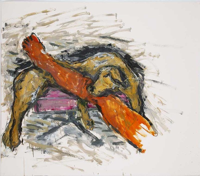 There are few paintings that come fast and sharp. I’m interested in this idea of looking down at a scene to get a different perspective within the painting. I’m sure I got that from Matisse. I can’t say what makes me say, “that’s wrong, that stays, that goes, this should be longer.” Sitting there and looking and going, “I have to do something, and do something, and then do something else,” that’s how a painting gets made.
