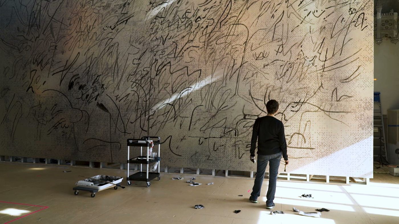 Julie Mehretu’s paintings and drawings embody elements of maps and architecture. Blurred images from race riots establish the underpainting, and on top of which, Mehretu layers strokes inspired by natural landscapes, colonial history, and melody—weaving past with present. On her desire to establish new narratives, Mehretu says “I think of them as these visual neologisms. The neologism is there to address when language isn’t enough.”