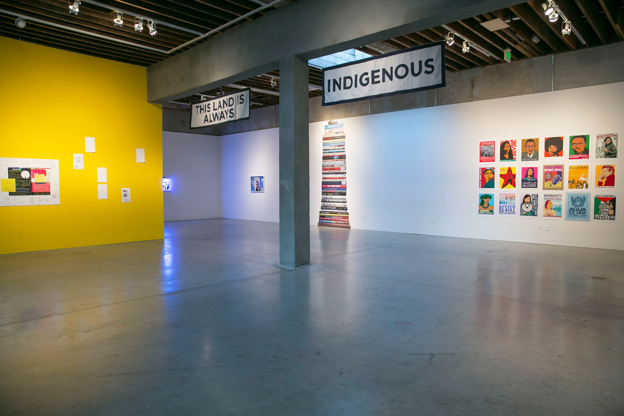 POLICARPIO: The artists in this exhibition not only have rigorous studio practices but also are engaged deeply with education and pedagogy. They are concerned with both teaching and unlearning. For example, you teach at Stanford and conduct other formal and informal work both here and in South Korea. Dylan Miner is a professor and the director of American Indian and Indigenous Studies at Michigan State University. Kameelah Janan Rasheed is a former high-school teacher who continues to work as a curriculum developer for New York City public schools. Outside of academia, the Oakland-based Dignidad Rebelde, a collaboration between the artists Melanie Cervantes and Jesus Barraza, and Demian DineYazhi’s collective, RISE: Radical Indigenous Survivance & Empowerment, are critical platforms for visualizing, organizing, and disseminating strategies and aesthetics of survival and resistance through art, publications, and programming. Sadie Barnette and Patrick Martinez mine the visual and historical vernacular of their home cities, Oakland and Los Angeles, to transcribe and illustrate its complexity, nuance, and beauty. The artworks in this exhibition challenge us with new ways of seeing, understanding, and knowing. That’s radical education.