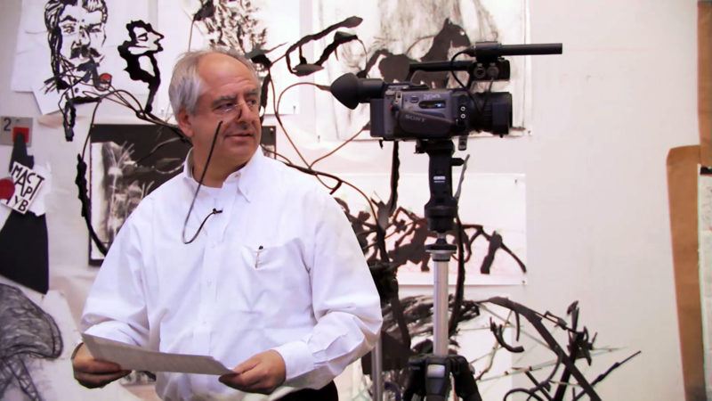 Additionally, Kentridge discusses his experiments with “machines that tell you what it is to look” and how the very mechanism of vision is a metaphor for “the agency we have, whether we like it or not, to make sense of the world.” We see Kentridge in his studio as he creates animations, music, video, and projection pieces for his various projects, including Breathe (2008); I am not me, the horse is not mine (2008); and the opera The Nose (2010), which premiered earlier this year at New York’s Metropolitan Opera to rave reviews.