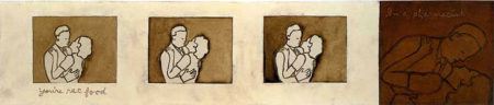 Applebroog propels her paintings and drawings into the realm of installation by arranging and stacking canvases in space, exploding the frame-by-frame logic of comic book and film narrative into three-dimensional environments. In her most characteristic work, she combines popular imagery from everyday urban and domestic scenes, sometimes paired with curt texts, to skew otherwise banal images into anxious scenarios infused with a sense of irony and black humor. Strong themes in her work include gender and sexual identity, power struggles both political and personal, and the pernicious role of mass media in desensitizing the public to violence.