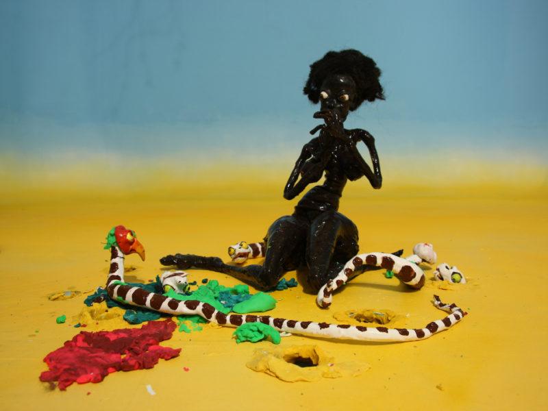 Djurberg intuitively handcrafts colorful clay figures and meticulously photographs each frame of the duo’s stop-motion films, dramatizing the perverse personalities of the cast of people, animals, and objects. With roots in electronic music, Berg scores the compositions and atmospheric sounds that bring the animations to life. Together, they build elaborate immersive environments that marry moving images with hypnotic musical scores. At times nightmarish and grotesque, their films are imbued with dark sense of humor and emotional depth.