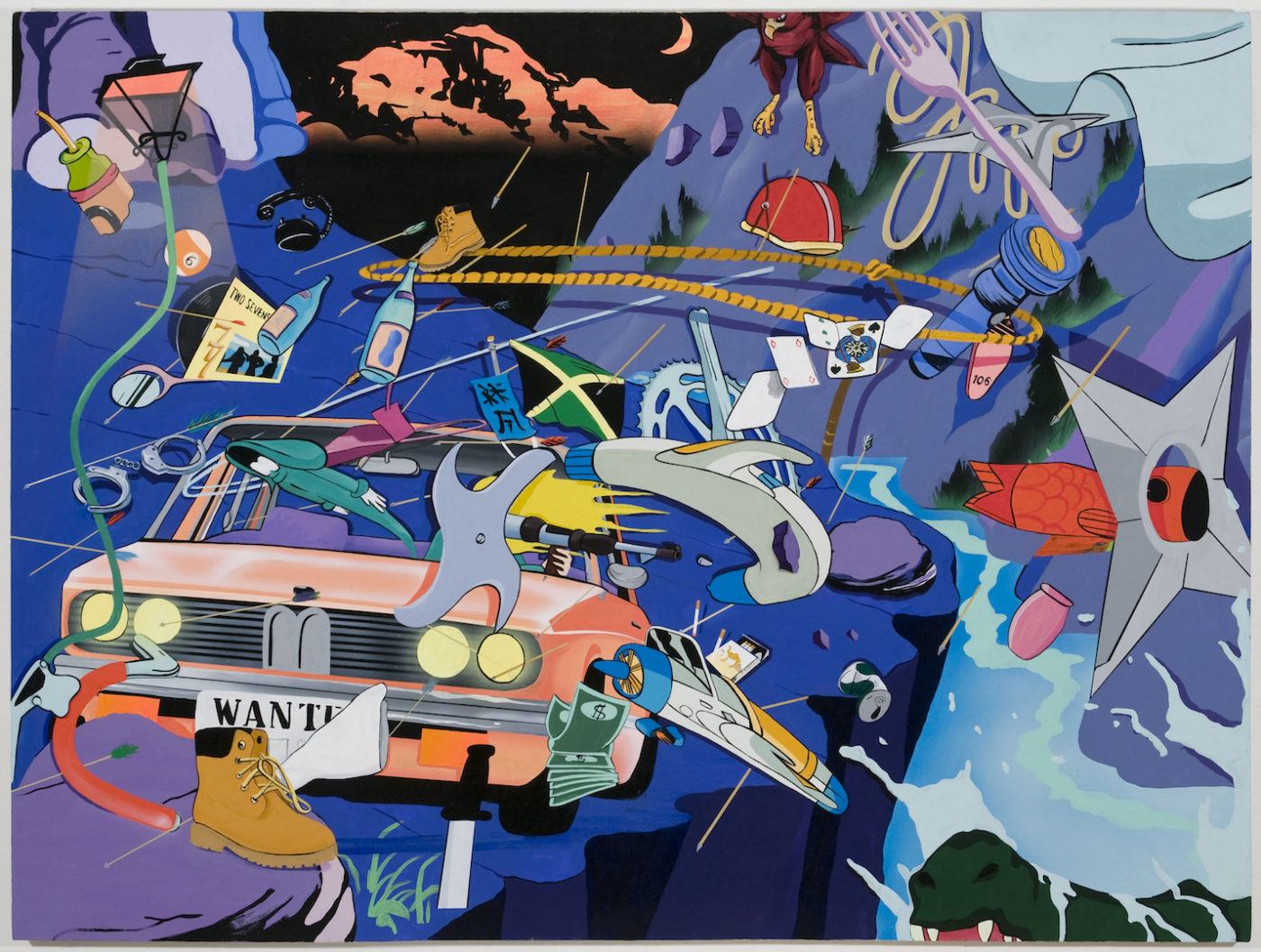 She often projects images of characters from cartoons and comic books onto her canvases, allowing her to build a narrative of disparate layers. With her rough aesthetic and bold palette, her approach has evoked references to Peter Saul. Driven by emotion and intuition, Juliano-Villani’s process often results in lengthy, demanding working sessions in her studio.