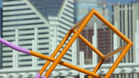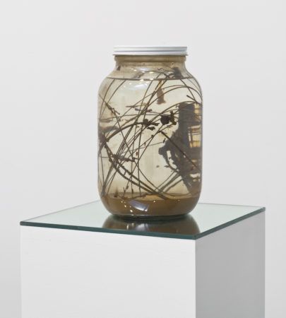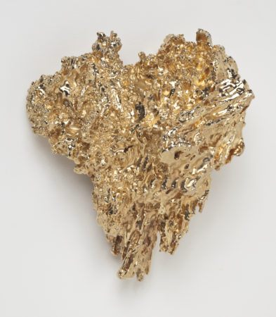 Optically they allure and confuse, such as her sculptures of wiry boxes that appear to solidify into new shapes based on the alignment of colors. Working with both analog and digital tools, Larner’s materials change from work to work and can include fiberglass, crystals, paper, clay, aluminum, steel, rubber, epoxy, mirror, cloth, and even bacteria. As daring as her investigation into new forms can be, Larner’s sculptures are approachable in their human scale and idiosyncratic vision that favors personal narrative over minimal austerity.