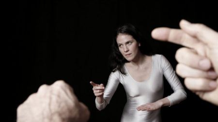 She often integrates audience participation into works that involve social and political critiques and has staged performances in public spaces such as banks and movie theaters; these projects were influenced in part by Bertolt Brecht’s concept of epic theater and Augusto Boal’s theater of the oppressed. More recently, Laser has expanded her interest in the construction of identities to include children and the ways in which their self-perception is influenced by the news media.
