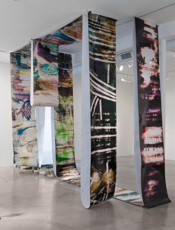 Through this open approach, a roll of metallic film accidentally exposed in her studio led to a series of large-scale works. Without knowing exactly what outcomes her hand-applied color chemicals will cause, she balances this lack of control with her mastery of the material. Her willingness to push the boundaries of photography allows her a freedom not often found within the field.