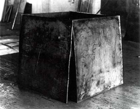 In addition to working with molten lead, Serra fabricated large steel sculptures that encompass viewers, inviting them to walk inside the works to experience their transformation of space. In The Matter of Time (1994-2005), the artist assembled eight different sculptures commissioned specifically for the Guggenheim Bilbao. Inspired by his experiences working in steel mills, Serra used weathering steel, a material used primarily for the manufacturing of ships. Each of the sculptures is melded and bent into different geometric shapes: double ellipses, torqued ellipses, or spirals, and is deliberately placed to create a temporal and spatial experience. The sculptures, appearing malleable and gravity-defying, have open tops and rotate upwards as they curve in and out. In other works, such as Charlie Brown (1999), commissioned specifically for The Gap Inc. offices, the artist constructed a sixty-foot steel sculpture only viewable from the building offices. Whether working in public spaces or within specific architectural sites, Serra manipulated steel to assemble large-scale geometric sculptures. In doing so, he produced a body of work that directly engages with its viewers and surrounding space.