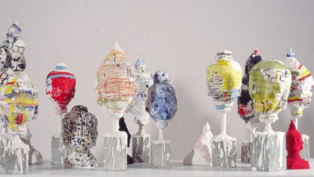 By incorporating casts of firebricks and porcelain slip molds into her sculptures (revealing the tools of industry), she reflects on and investigates the tradition of decorative arts. Variously sensual, humorous, and elegant, her clay-based vessels evoke the tension between control and chaos, beauty and ugliness, perfection and imperfection. Considering herself an installation artist who happens to make objects, Shechet focuses intently on ensuring that the display, sight lines, and relationships of the objects in her exhibitions change with every view while maintaining formal equilibrium.
