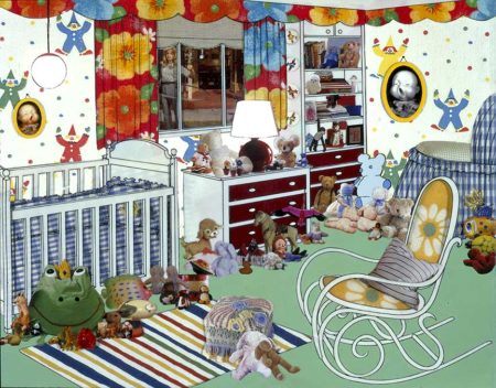 On first glance, her works often appear whimsical, but there is a disquieting aspect to Simmons’s child’s play, as her characters struggle over identity in an environment in which the value placed on consumption, designer objects, and domestic space is inflated to absurd proportions. Simmons’s first film, The Music of Regret (2006), extends her photographic practice to performance, incorporating musicians, professional puppeteers, Alvin Ailey dancers, Hollywood cinematographer Ed Lachman, and actress Meryl Streep.