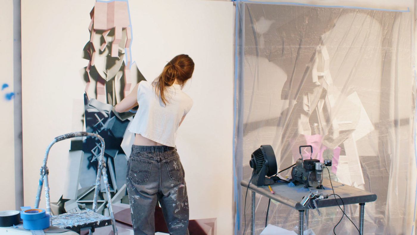 Employing the 3D-modeling software, Google SketchUp, to create an under-drawing, Singer applies acrylic paint to the canvas via an airbrush, creating images that are both digital and analog. The artist’s conceptual considerations are bolstered by her deep sense of art history, to which the titles of her works occasionally make references. In her juxtaposition of unexpected props that appear part human and part cyborg, Singer finds her inimitable signature style.