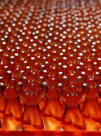 In Some/One, the floor of the gallery is blanketed with polished military dog tags. Evocative of the way an individual soldier is part of a larger troop or military body, these dog tags swell to form a hollow, ghost-like suit of armor at the center of the room. Whether addressing the dynamic of personal space versus public space, or exploring the fine line between strength in numbers and homogeneity, Suh’s sculptures continually question the identity of the individual in today’s increasingly transnational, global society.