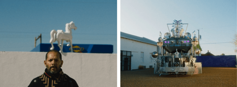 The first time I connected with Guadalupe, we spoke about the bus, Mariposa Relámpago, and what its presence in Marfa, Texas was going to look like. I felt that there was a lot of poignancy and emotion in Guadalupe’s intentions for Marfa, and I wanted the film to reflect that. We thought a lot about how to express the story in an emotional way and how to make the bus feel like a living, breathing, traveling thing, despite the fact that it’ll be installed as a sculpture in the garden at Marfa Ballroom. It was important for us to mirror Guadalupe’s journey with the bus’s journey and find ways to visually represent how the two are entangled and how they defy time.