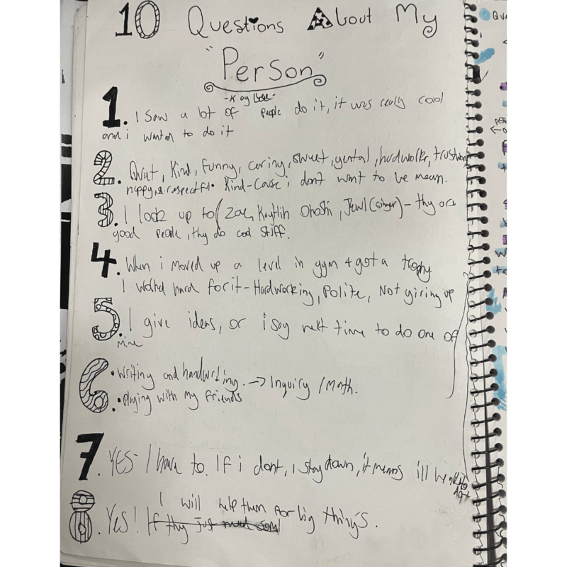 The students began mind-mapping who they might consider an important or influential person in their life and with whom they could have a conversation. They completed some research about this person and wrote questions they would ask, contemplating what counter questions might then be asked. After more practice in conversation, the students, armed with these recently practiced tools, interviewed their chosen person.