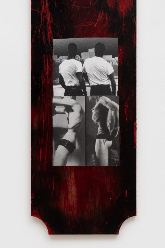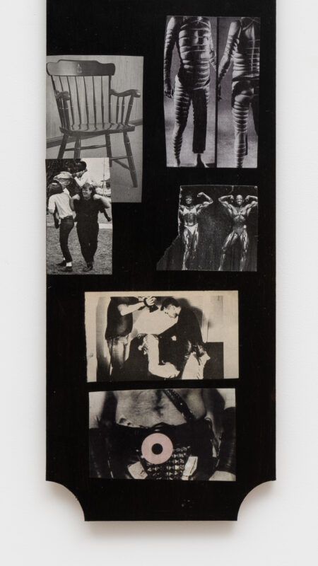 My 2023 Exhibition at Anat Ebgi, “Fratricide,” was based around collaged fraternity paddles. I was thinking about sex, violence, ritual, and play, in the context of fraternities, the family, and the military: institutions that are vital to the normative American self-image but which are built on brutality and coercion. The things I’m interested in with regard to the paddles and these homosocial spaces are these relationships between power and desire, violence and eroticism. I’m using this as an entry point to look more closely at how power functions and to see how it could be made strange: where assumptions might be uprooted, or the seemingly concrete might unravel.