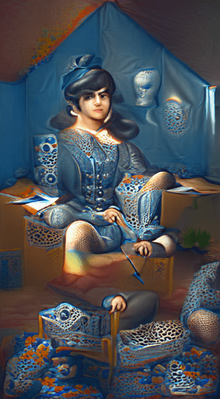 Our world becomes so small when we only understand ourselves through the context of now. History allows you to put things in a context that is much bigger than yourself. But history always comes with the power of those who have had access to telling it. For example, when you think about definitions of queerness from a Western perspective, there is a lot of order and categorizing of identity. But looking at the history of the Qajar Dynasty [1789-1925] in Iran, it’s amazing that what we know as “queerness” today was ordinary. Intimate same-sex relationships were natural. The relationship to beauty and gender was much more fluid. 350 years later, that’s not what we understand about our cultures, due to colonialism and oppression. In my piece Moon-Faced, I work with an AI system, feeding it different visuals and sentences, and asking it to undo the loss of visual representation of this queer culture: to repair this history of colonization.