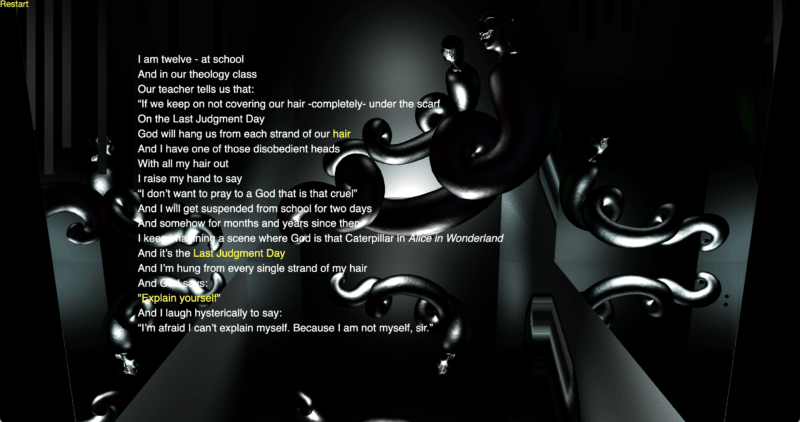 I made this in 2018, and now in 2022 we have the Jin.Jiyan.Azadi/Woman, Life, Freedom Revolution in Iran. Somehow I think this story, this future, is coming into real life practice, and that’s so powerful and important to witness. It’s one of the only revolutions that women have been on the frontline of: women and their bodily agency. We know that patriarchal violence and government violence is still very real and very harmful. Right now, as we do this interview, there is daily news of arrest, torture, and execution of protesters and activists in Iran. All these tactics are about gaining control over your body, mind, and life.