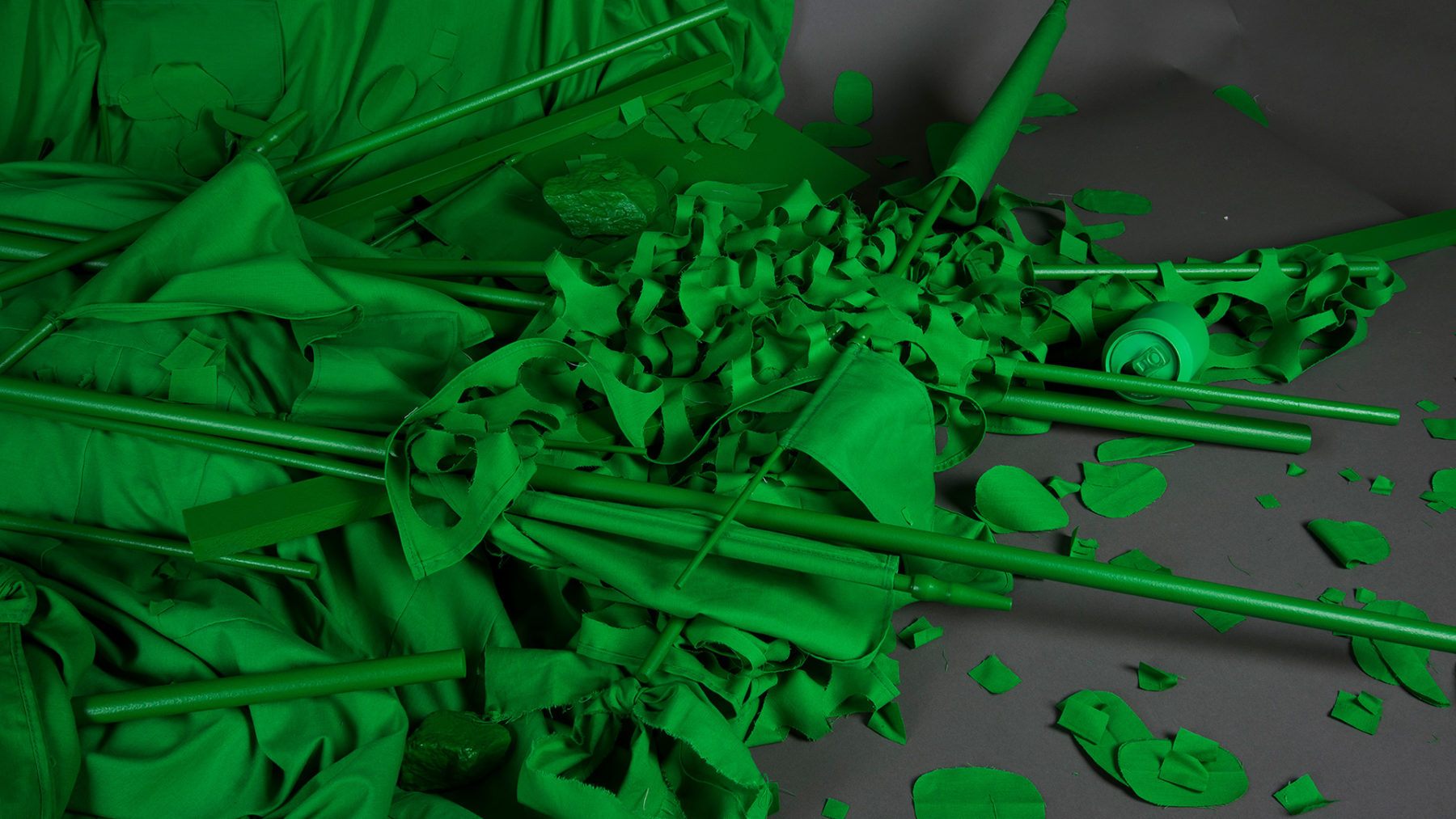 When I use [chroma key] in my artwork, I use it as a symbol of the ability of the material to be a stand-in for multiple ideas. Chroma key green backdrops are usually used in video post-production, because when you shoot someone against it, you’re able to drop out that green color and substitute in any image.