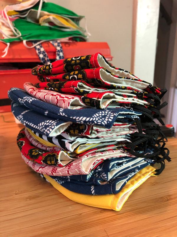 When this whole thing started, it became apparent that lack of protective face coverings was going to become a big problem. There were a lot of home sewers across the country who were starting to pool knowledge to figure out what cloth masks could work. I have a sewing machine at home and I’ve had a couple of decades worth of sewing experience, from fabricating my own artwork, so [making masks] seemed pretty straightforward. I went through a couple of different prototypes, got feedback from other people, and settled on a couple of different styles that I’ve been producing now.